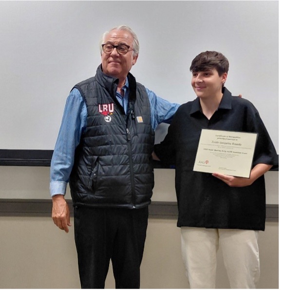 La Roche University Women’s Soccer Head Coach Miguel Lozano attended and congratulated Zaida who is on the La Roche University Women Soccer team on receiving the AAUW Grant.