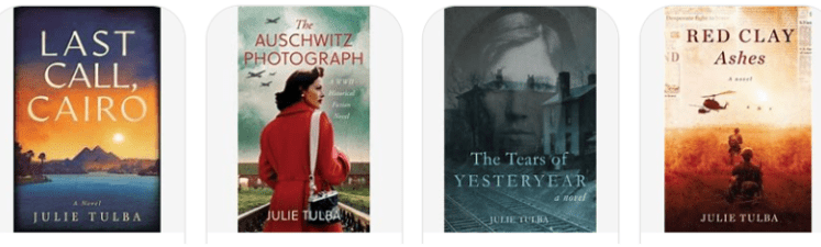 Julie published her first book, The Tears of Yesteryear, in 2019, followed by The Auschwitz Photograph (originally published as The Dead Are Resting) in 2021, Red Clay Ashes in 2022 and Last Call Cairo in 2024. She lives in the Pittsburgh area, with her passport always at the ready for her next international adventure, but also brainstorming ideas for her next novel.