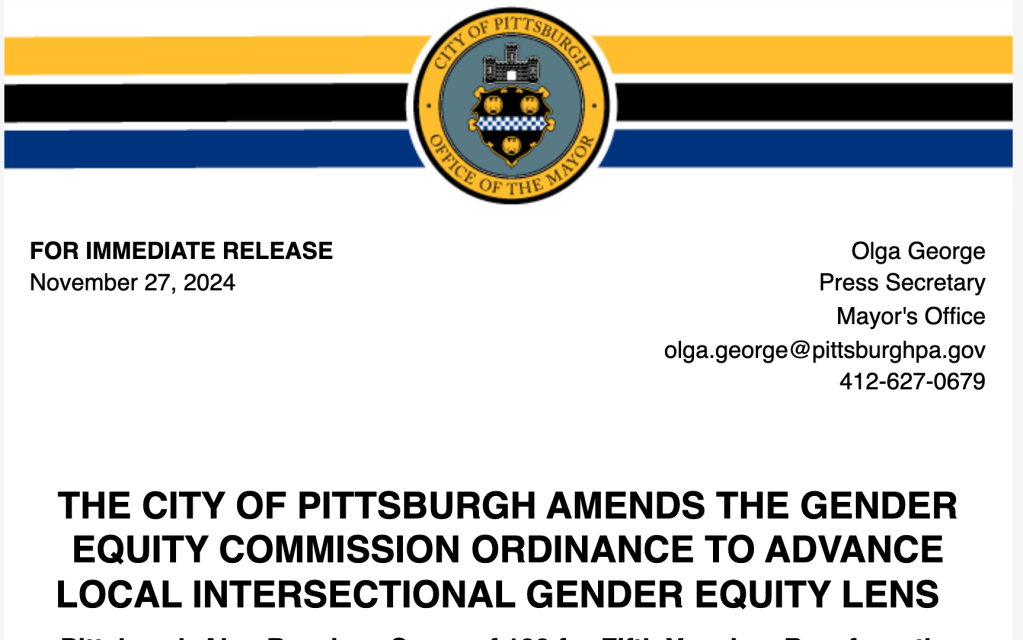 THE CITY OF PITTSBURGH AMENDS THE GENDER EQUITY COMMISSION ORDINANCE TO ADVANCE LOCAL INTERSECTIONAL GENDER EQUITY LENS