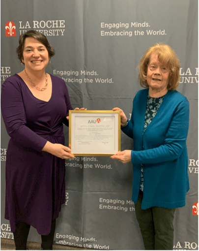 On March 11, the American Association of University Women North Hills Pittsburgh Branch presented its 2023 Gateway to Equity Award to Kim Freithaler, North Hills Art Center executive director.
